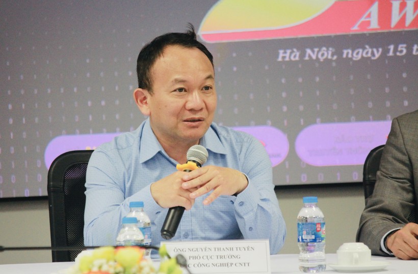 Ông Nguyễn Thanh Tuyên, Phó Cục trưởng Cục Công nghiệp CNTT (Bộ KH&CN), Chủ tịch Hội đồng sơ khảo VDA trả lời câu hỏi của phóng viên.